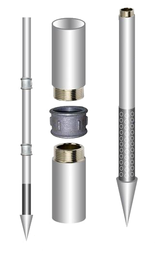 Состоит приспособление из труб, соединенных в единую колонну, на нижнем крае которой расположена фильтрующая система и наконечник в виде конусного острия. С его помощью и «прокалывали» почву, как иглой, забивая его в землю, постепенно наращивая столб из водоотводных труб. Это и стало поводом для названия такого типа скважины.